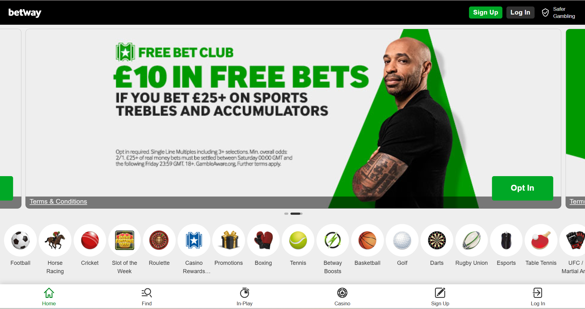 Betway stands out among the best betting sites not on GamStop with a very wide range of sports odds and markets, covering football, horse racing, tennis, cricket, basketball, esports and more. You’ll find deep market depth on major competitions like the Premier League and Grand National with hundreds of betting options, from standard match bets to detailed player props. Popular features include Bet Builders, cash out on many markets, accumulator boosts, and the Free Bet Club, where regular users can earn free bets weekly by placing qualifying multiples. The welcome promotion for new UK customers typically includes a matched free bet offer.