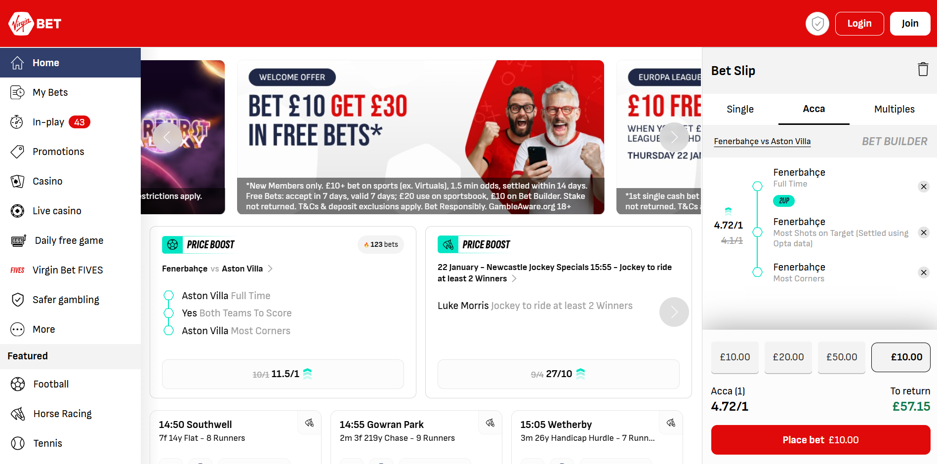 Virgin Bet4.8/5Bet £10 Get £40Football Betting